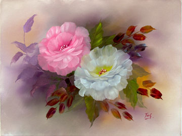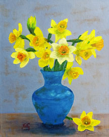 “DAFFODILS IN BLUE VASE” (PRIVATE COLLECTION) WHITE & PINK ROSES  (PRIVATE COLLECTION) MUMS  (PRIVATE COLLECTION) PHOEBE YELLOW & PINK ROSE JANE’S POPPIES OILS & ACRYLICS - FLOWERS GALLERY (Click on image to enlarge)