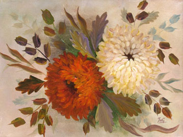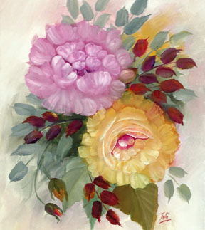 “DAFFODILS IN BLUE VASE” (PRIVATE COLLECTION) WHITE & PINK ROSES  (PRIVATE COLLECTION) MUMS  (PRIVATE COLLECTION) PHOEBE YELLOW & PINK ROSE JANE’S POPPIES OILS & ACRYLICS - FLOWERS GALLERY (Click on image to enlarge)