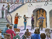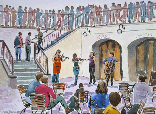 WATERCOLOURS - OTHER SCENES GALLERY (Click on image to enlarge) CAFE MUSICIANS (1) CAFE MUSICIANS (2) DANCING SPRAY AFTER THE STORM. . EYNSFORD, KENT (PRIVATE COLLECTION)